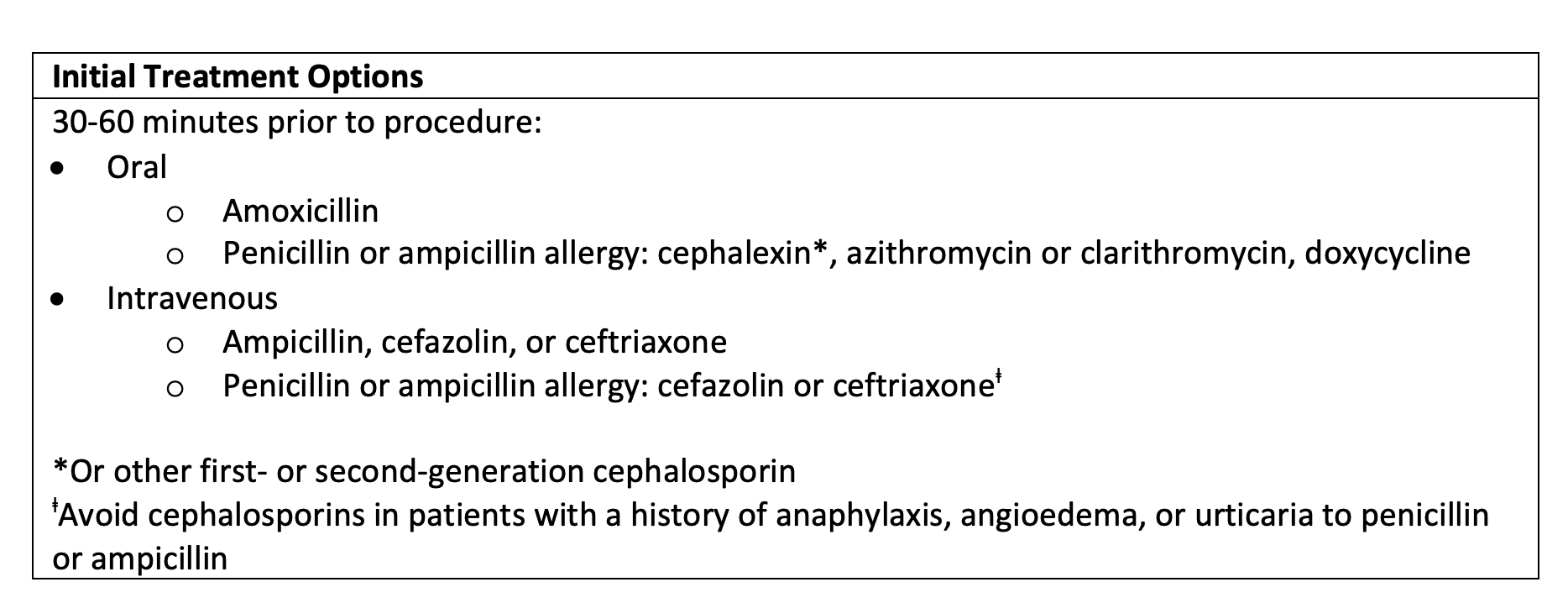 Table 2 Antimicrobial Prophylaxis Treatment Options 4